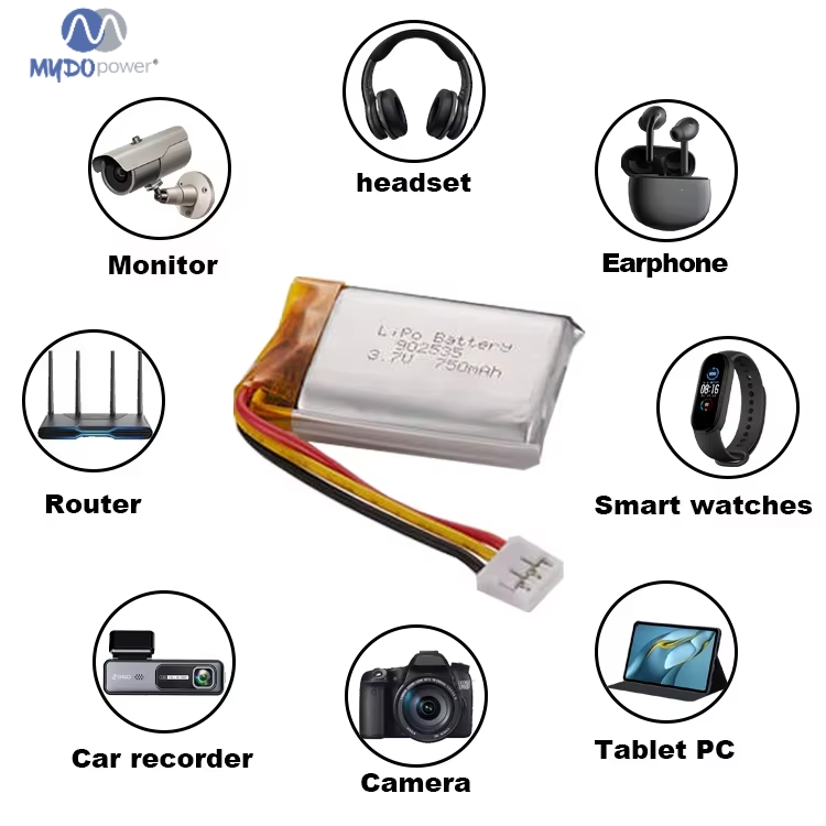 thing Lipolymer battery Battery size 350840 85mAh application Consumer Electronics Cycle life 500 times Cathode Materials other model 503035 Working temperature(℃) 0-45 Brand Name Mydo Battery Type Solid State weight 2 g Origin China