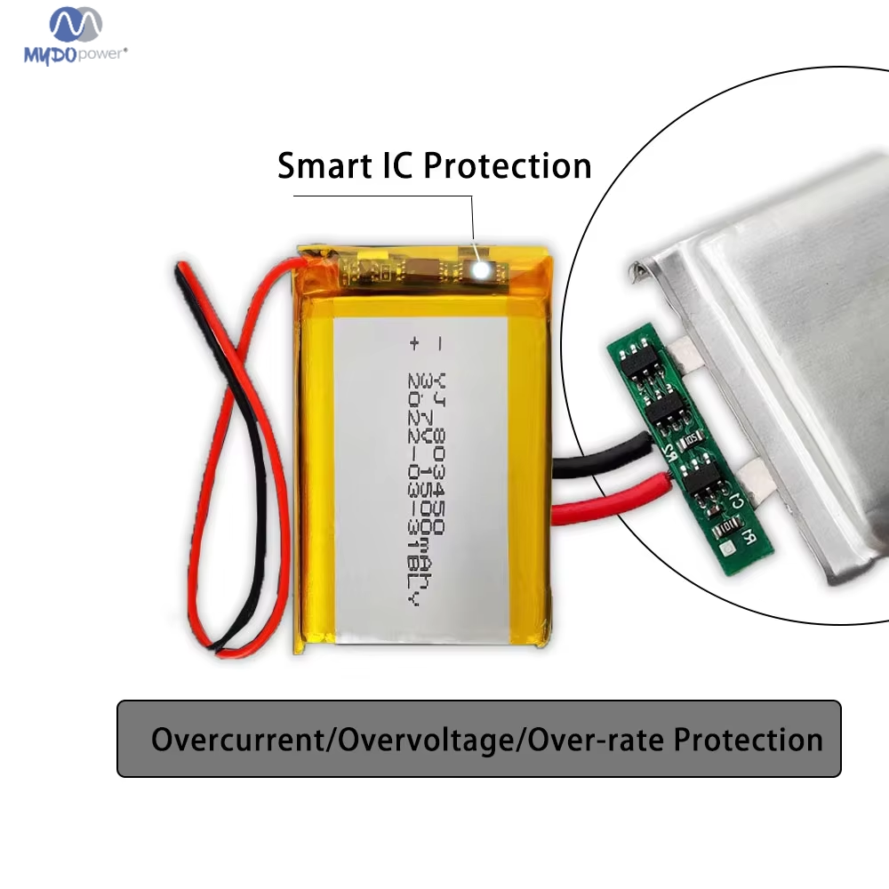 thing Lipolymer battery Battery size 503035 530mAh application Consumer Electronics Cycle life 500 times Cathode Materials other model 503035 Working temperature(℃) 0-45 Brand Name Mydo Battery Type Solid State weight custom Origin China