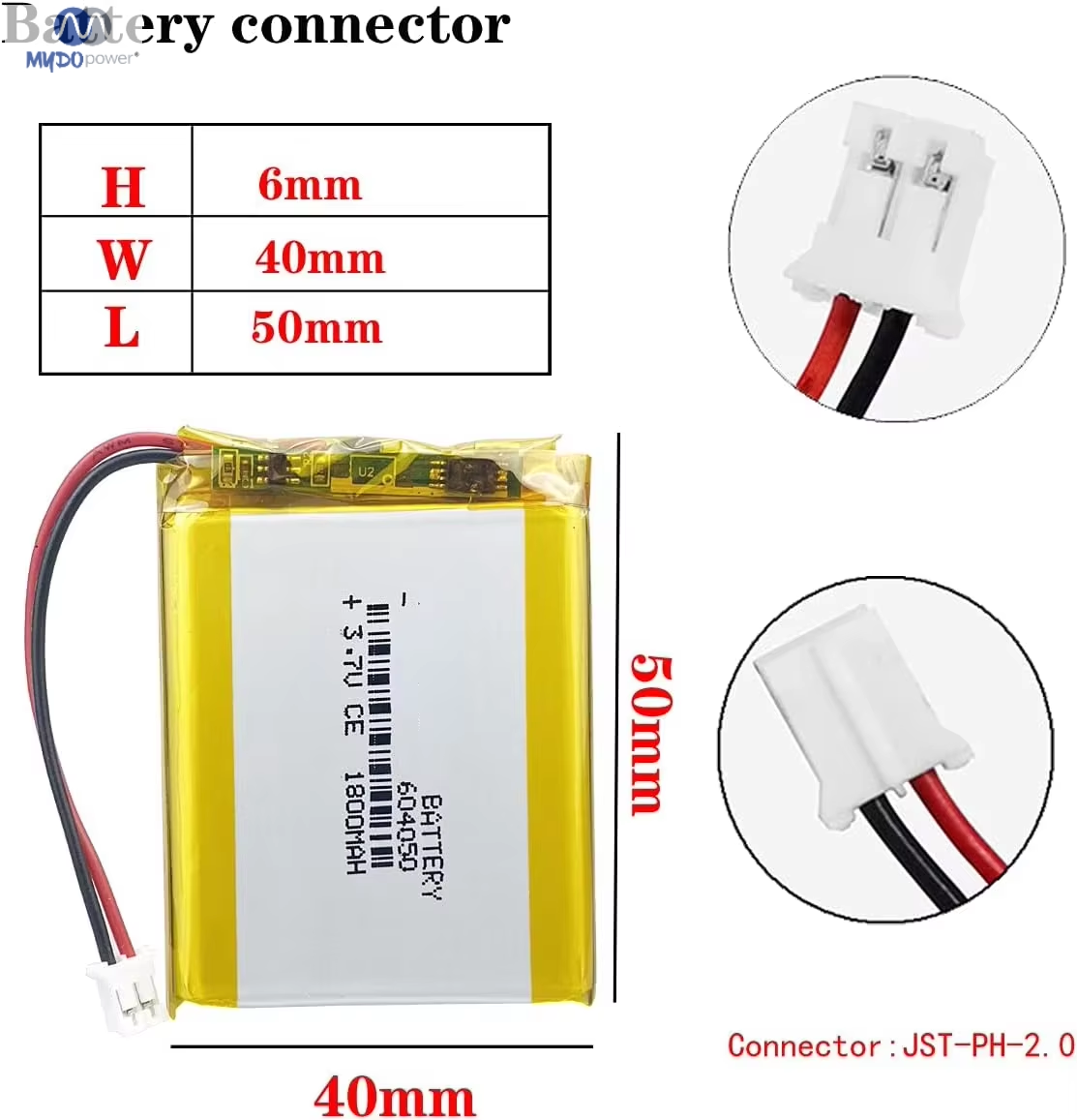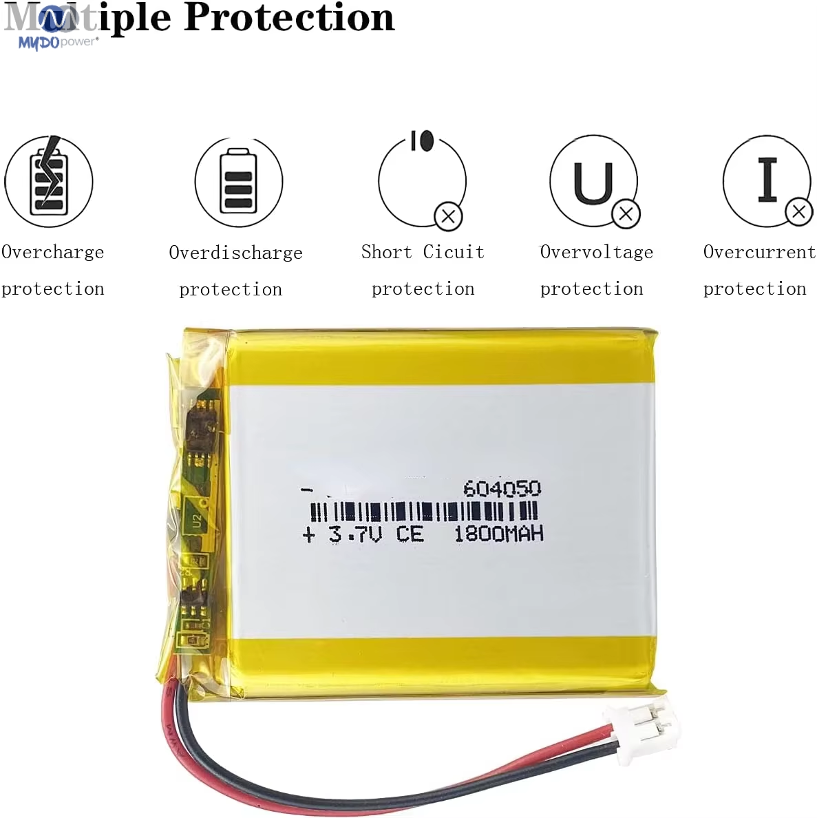 thing Lipolymer battery Battery size 604050 1800mah application Consumer Electronics Cycle life 500 times Cathode Materials other model 604050 Working temperature(℃) -20 - 60 Brand Name Mydo Battery Type Solid State weight 15 g Origin China