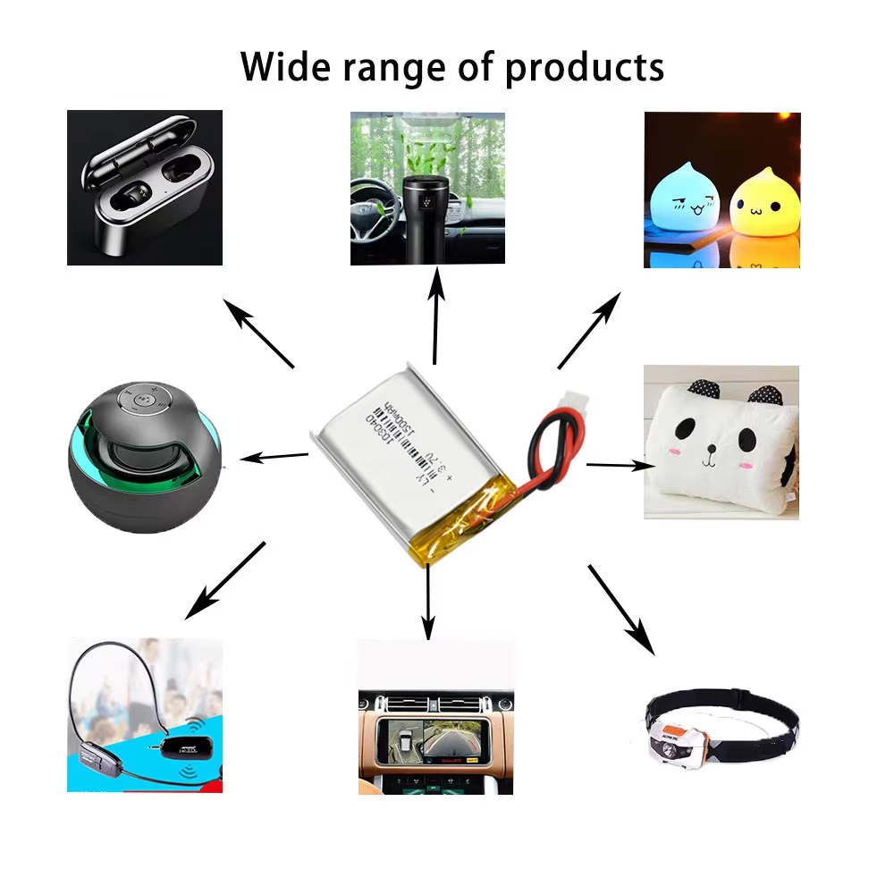 Product name:Lithium Battery Capacity:All can be made Voltage:3.7V Battery cell:A- Grade Warranty:12 Months Protection:Optional PCB Cycle life:500-1000 Times MOQ:100pcs Package:Cutomized Package