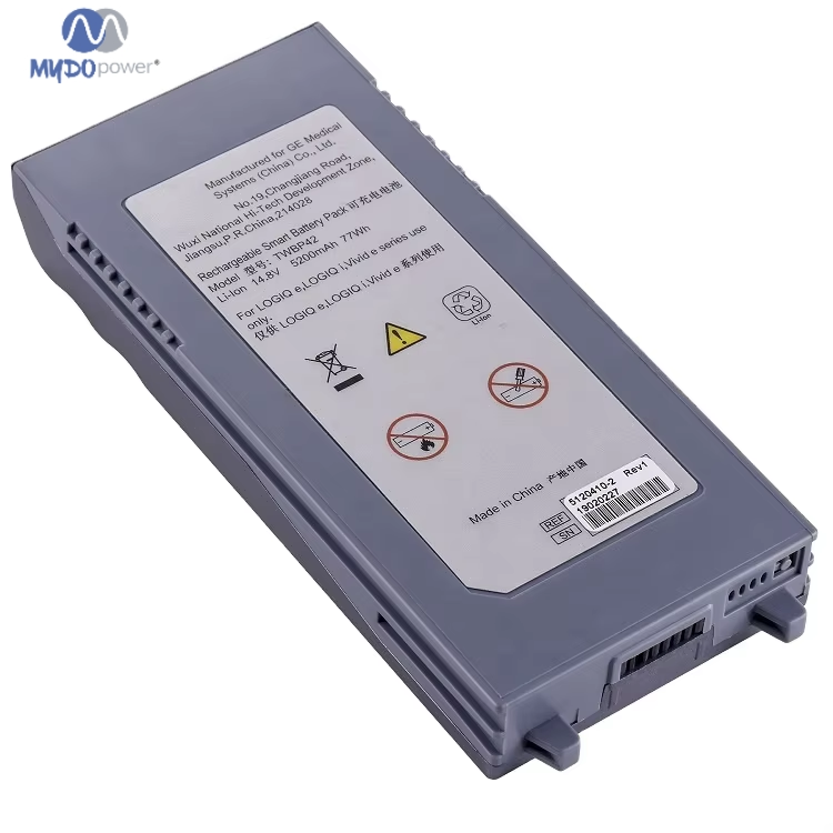 Battery type:Lithuum Ion Battery Model:5120410-2 TWBP42 Size:168*73.4*22.5mm Weight:431g Certification:CE & RoHS Warranty:12 months Oem:supported Capacity:5200mAh Voltage:14.8V Application:ultrasound machine