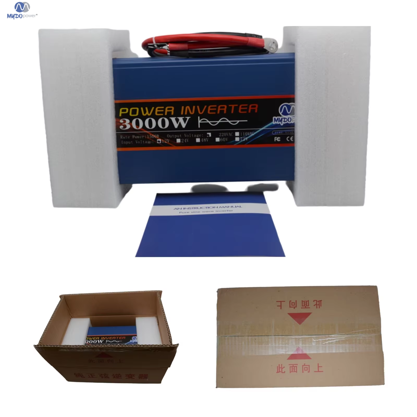 Origin: Guangdong, China Model: GV1000W Output voltage: AC 110V/220V Output type: Single Output frequency: 50Hz/60Hz Pure sine wave Peak power: 500W