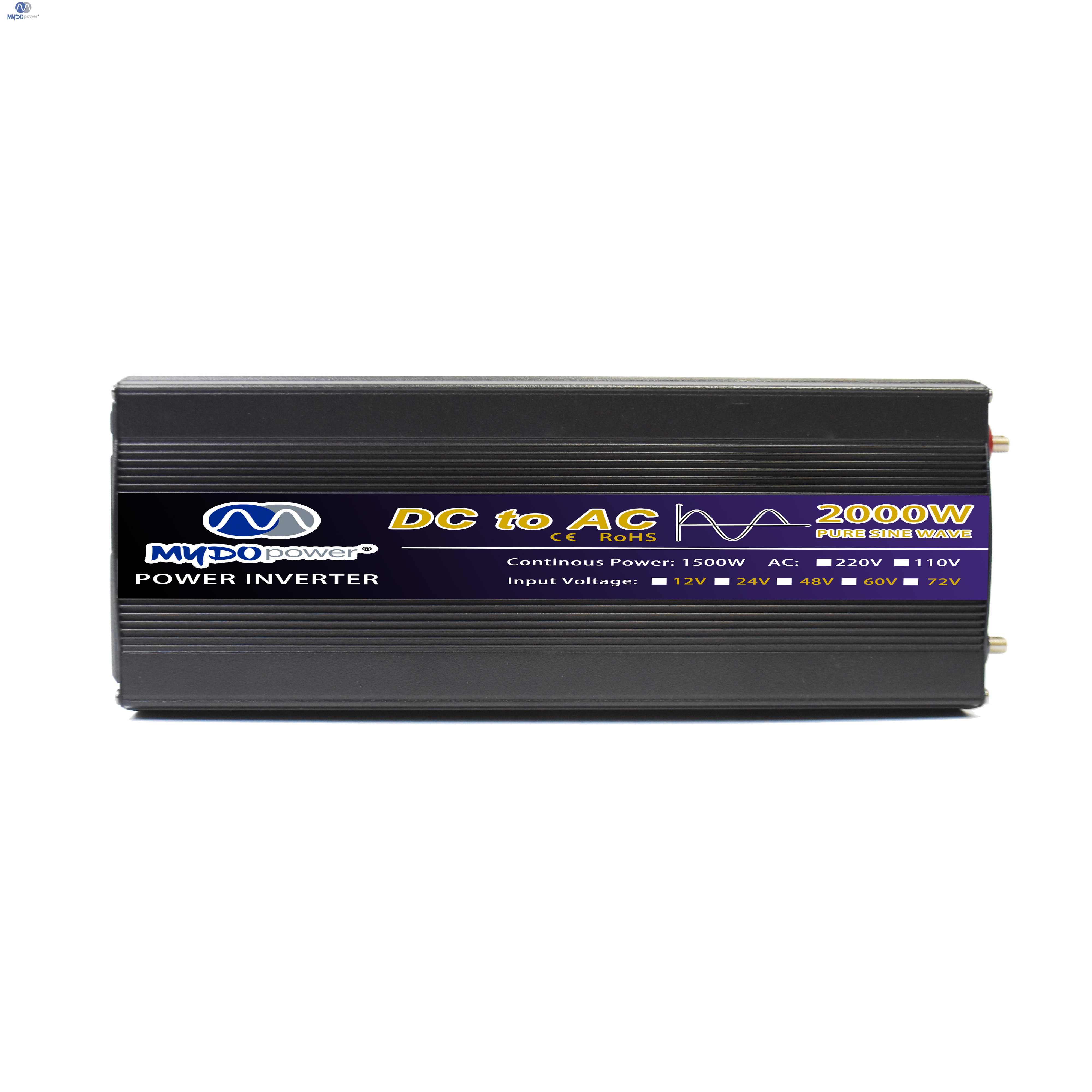 Origin: Guangdong, China Model: MD2000W Output voltage: AC 110V/220V Output type: Single Output frequency: 50Hz/60Hz Pure sine wavel Peak power: 1000W