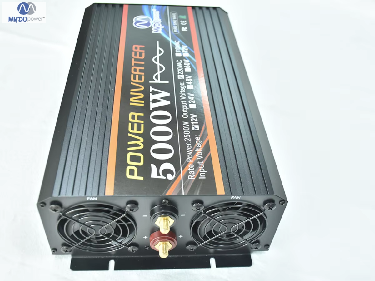 Origin: Guangdong, China Model: MDH5000W Output voltage: AC 110V/220V Output type: Single Output frequency: 50Hz/60Hz Pure sine wave Peak power: 2500W
