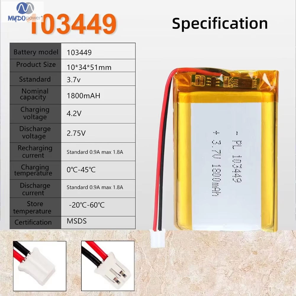 Specification thing Lipolymer battery Battery size 503035 530mAh application Consumer Electronics Cycle life 500 times Cathode Materials other model 503035 Working temperature(℃) 0-45 Brand Name Mydo Battery Type Solid State weight 34 g Origin China