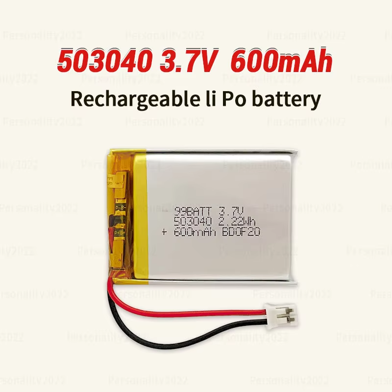 For custom orders, please contact customer service. Brand: mydo/OEM Model: 503040 Weight: 6g Cycle life: 500 cycles Origin: China Operating temperature: -20-50°C Voltage: 3.7V Capacity: 600mAh
