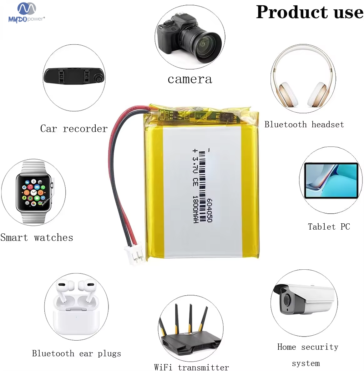 thing Lipolymer battery Battery size 604050 1800mah application Consumer Electronics Cycle life 500 times Cathode Materials other model 604050 Working temperature(℃) -20 - 60 Brand Name Mydo Battery Type Solid State weight 15 g Origin China
