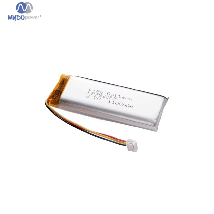 thing Lipolymer battery Battery size 782257 1100mAh application Consumer Electronics Cycle life 500 times Cathode Materials other model 782257 Working temperature(℃) -20 - 60 Brand Name Mydo Battery Type Solid State weight 22 g Origin China