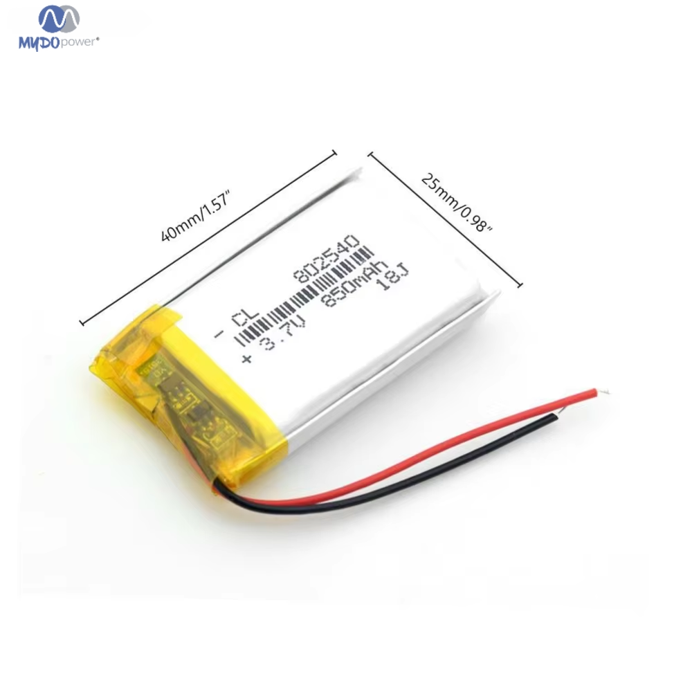 thing Lipolymer battery Battery size 802540 850mAh application Consumer Electronics Cycle life 500 times Cathode Materials other model 802540 Working temperature(℃) 0-45 Brand Name Mydo Battery Type Solid State weight 10 g Origin China