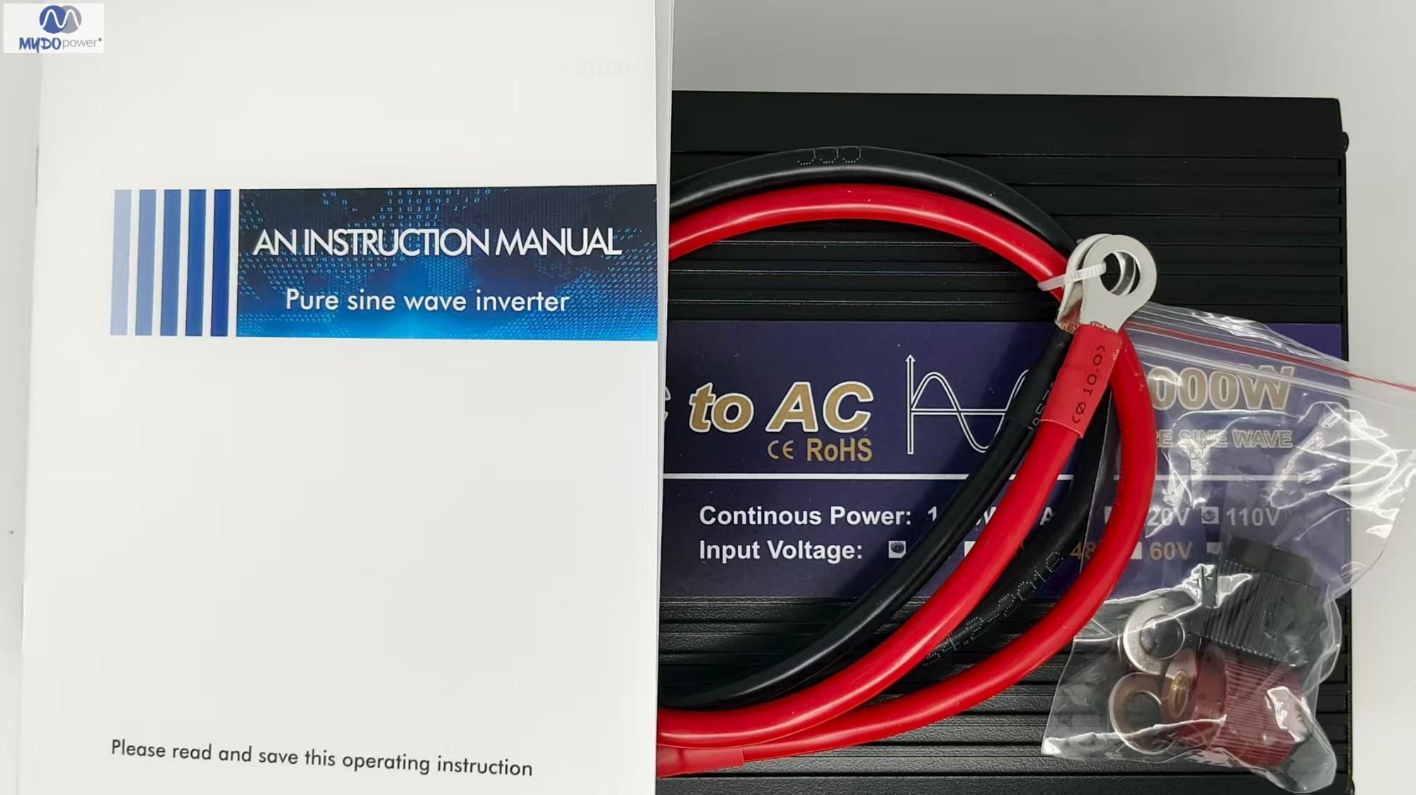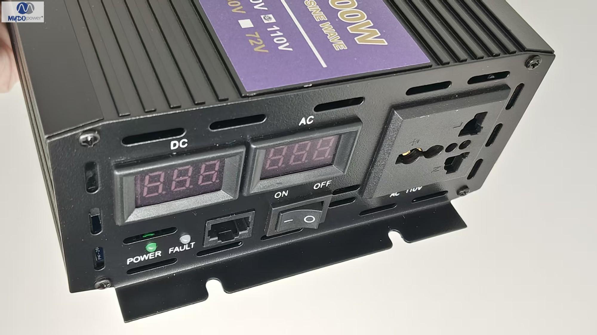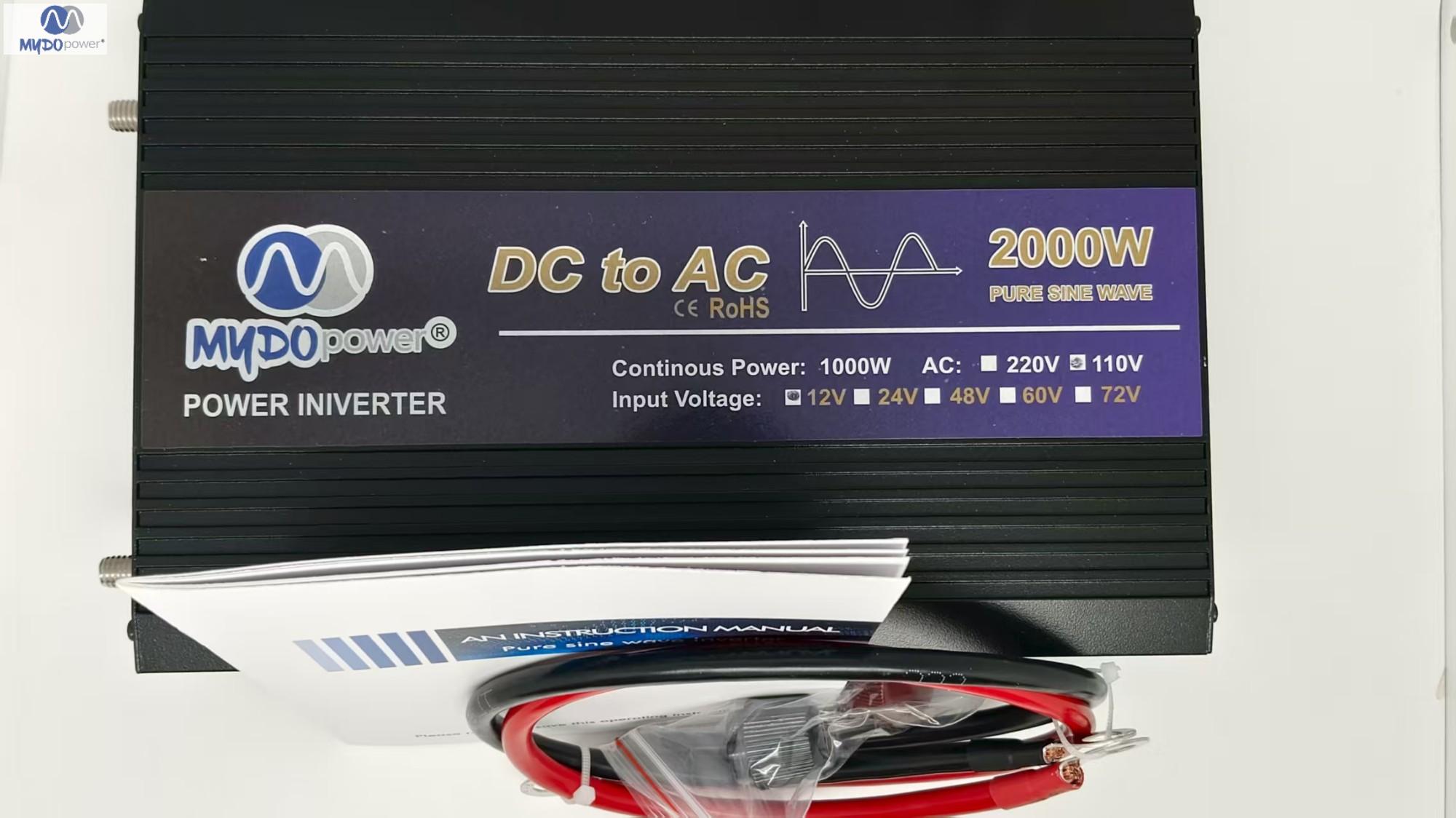 Brand: MYDO Model: MD-2000W Dimensions: 28.6*10.3*6cm Weight: 1.2kg Output Type: Single Output Power: 2000W/1000W Output Frequency: 50Hz/60Hz Origin: China Packaging Dimensions: 35*17*7cm Packaging Weight: 2.5kg