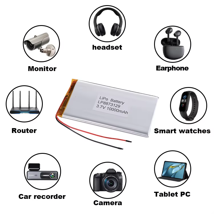 Model No:8873129 connecter type:PH2.0 Battery type:Rechargeable Li-po Battery Anode Material:NCM Voltage:3.7v Capacity:10000mah Size:88mm73mm129mm Weight:60g Warranty:12 months OEM:Supported
