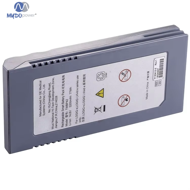 Battery type:Lithuum Ion Battery Model:5120410-2 TWBP42 Size:168*73.4*22.5mm Weight:431g Certification:CE & RoHS Warranty:12 months Oem:supported Capacity:5200mAh Voltage:14.8V Application:ultrasound machine