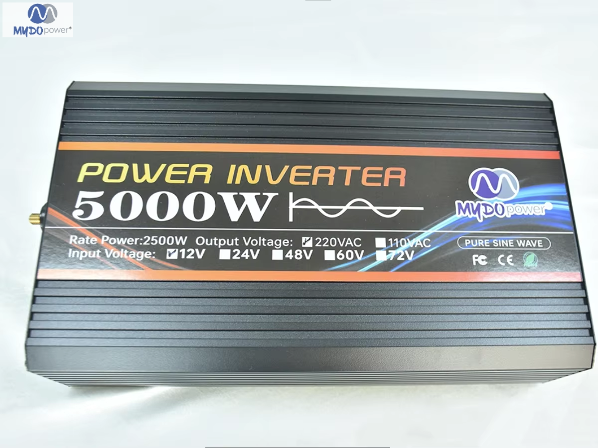 Origin: Guangdong, China Model: MDH5000W Output voltage: AC 110V/220V Output type: Single Output frequency: 50Hz/60Hz Pure sine wave Peak power: 2500W